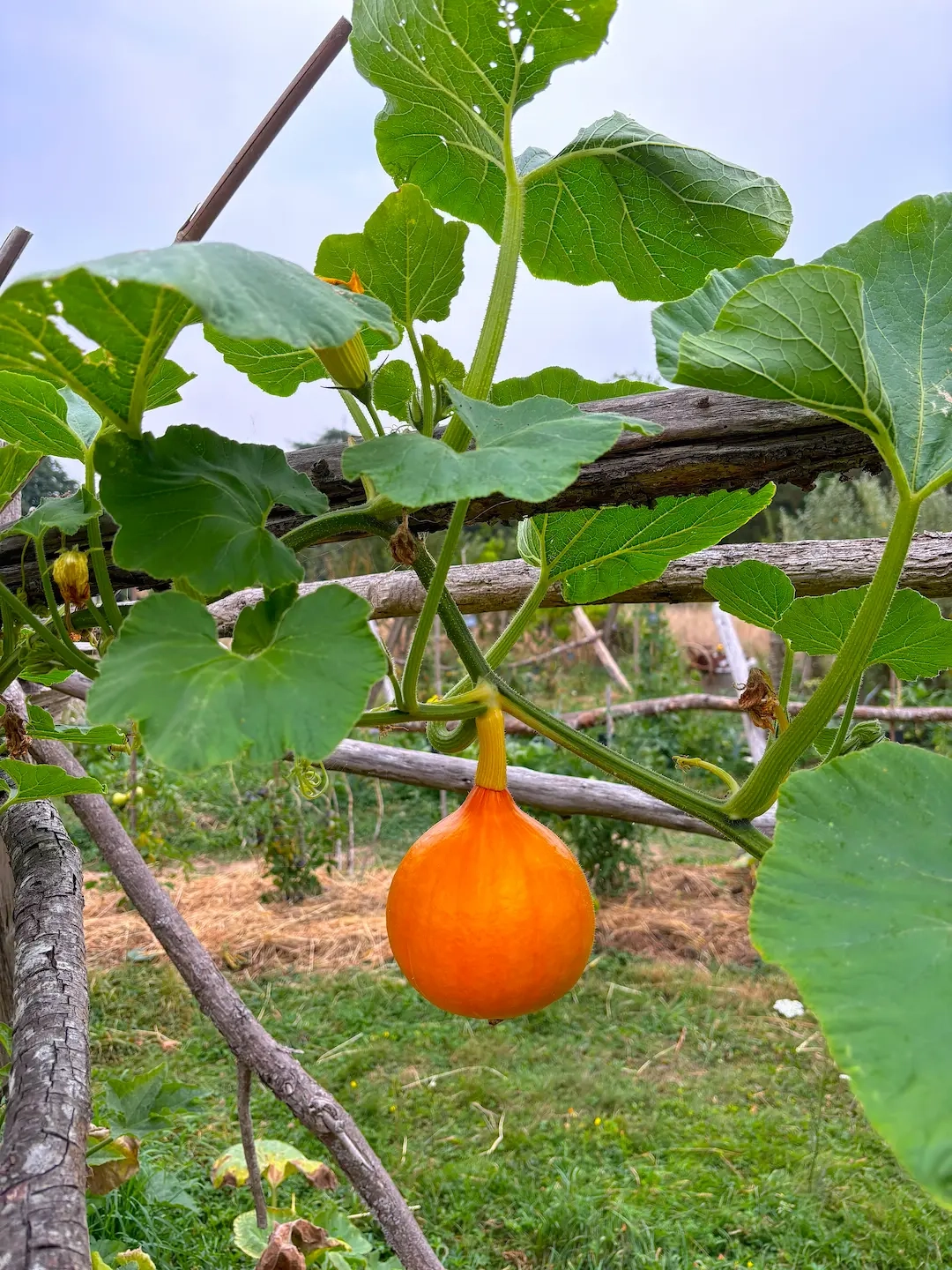 Cette courge coureuse produit des fruits en forme de poire, à la peau rouge orangée, généralement compris entre 1 et 2 kg. Vigoureuse et productive, elle s’adapte bien à différents types de sols et offre de bonnes récoltes même dans des conditions de culture difficile. Bonne conservation.