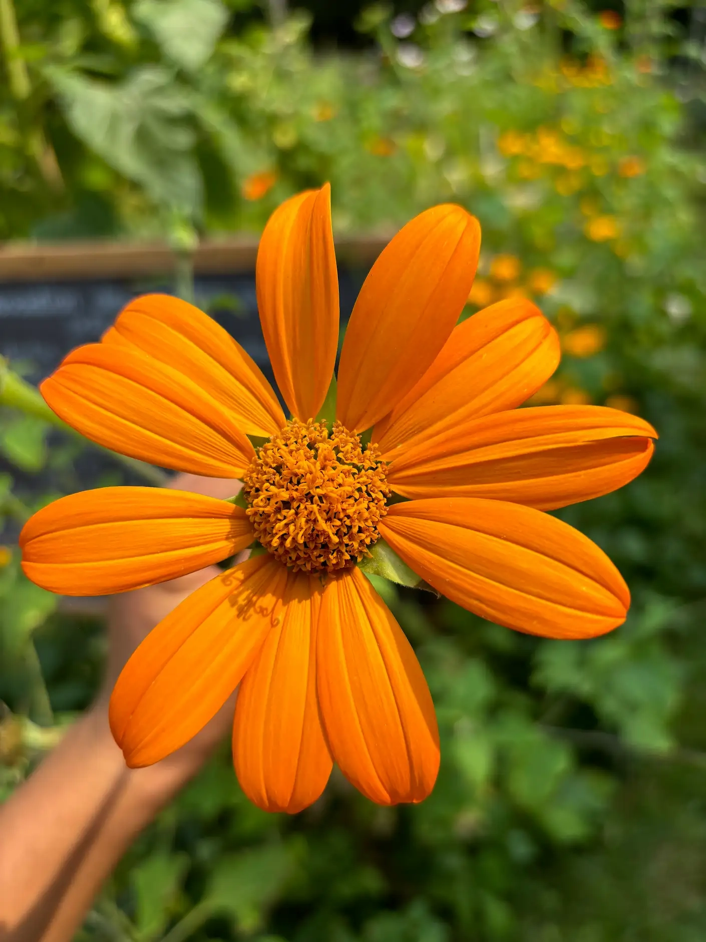 La Tithonia est idéale en fond de massif, en association avec des légumes du potager ou pour créer un jardin vivant riche en biodiversité.