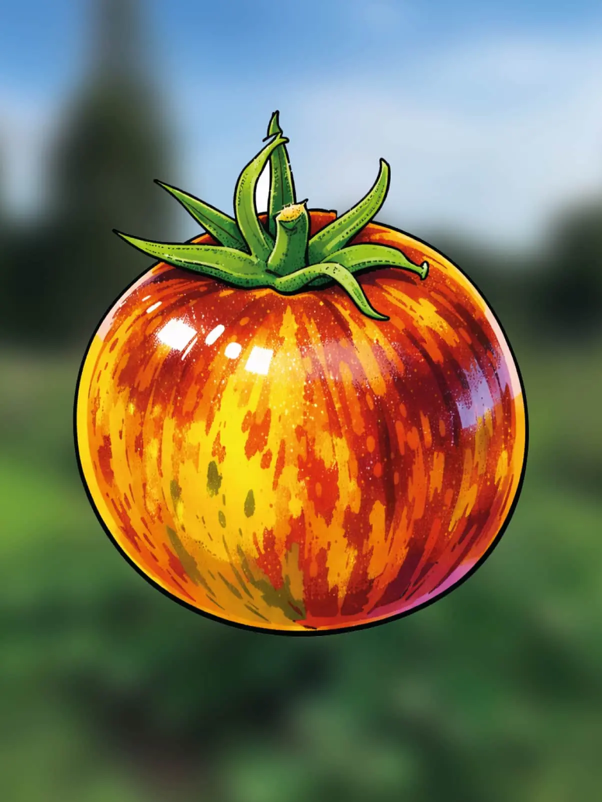 -Tomate Indigo Ussuriysky tigr : Variété originaire d’Ukraine, elle produit de petits fruits ronds de 60 à 90 g, réunis en grappes. Sa robe jaune orangé, largement marbrée et tigrée de taches violacées d’anthocyane, est tout simplement spectaculaire : chaque tomate est unique. La chair est juteuse et savoureuse. Productive !